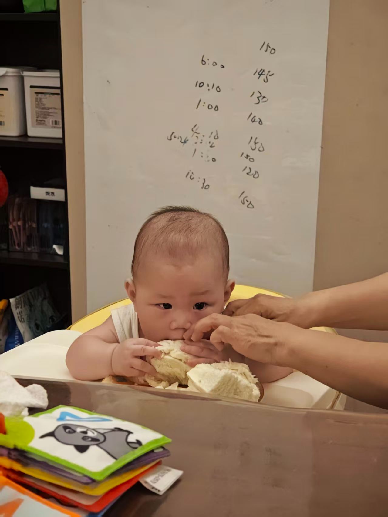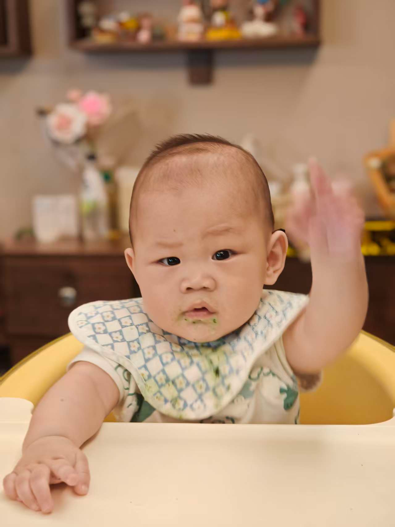 每一顿辅食,都是一场速度与激情的较量。头几口,他还是个优雅的小绅士。几分钟后,画风突变,他开始伸手抢勺子,试图掌握“干饭”的主动权。于是,五颜六色的米糊糊,以他的脸为中心,呈放射状溅得到处都是。有次我只是随手摸了下胳膊侧面,竟然摸到一把中午吃剩的、已经风干的米粥渣……看着他那张沾满食物、却无比开心的小花脸,你所有的火气都会瞬间蒸发,只剩下无奈的笑和一个深刻的思考:等到了自主进食期,是不是每顿饭后都得直接拎去洗澡?